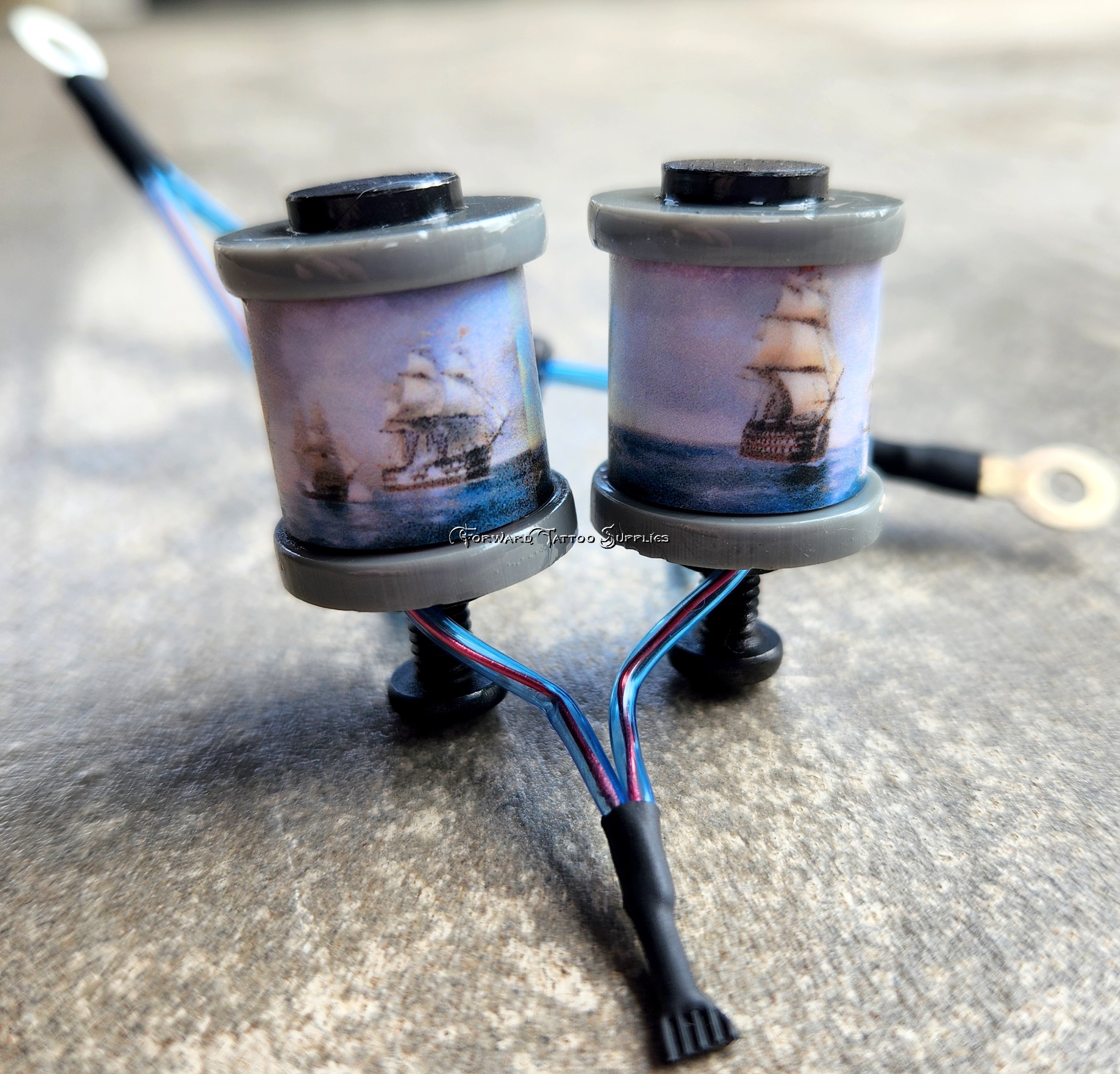 1″ 8 Wrap Gray Clipper Ships Candy Blue Tattoo Machine Coil Set