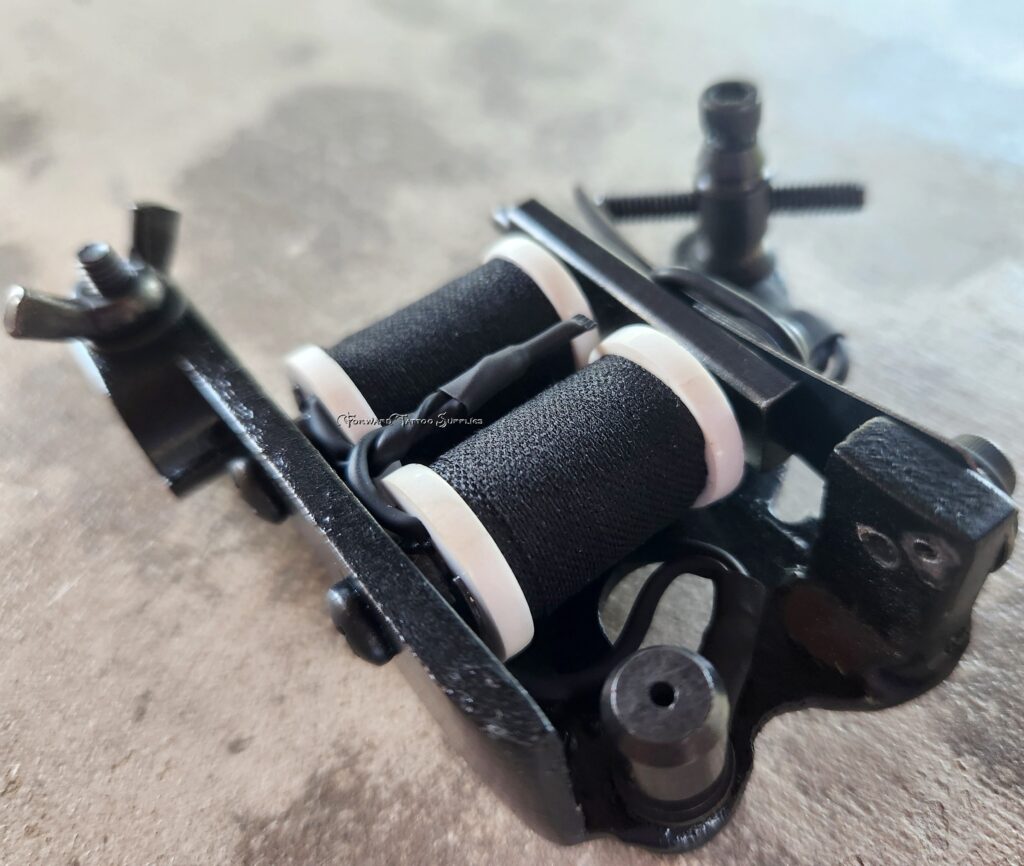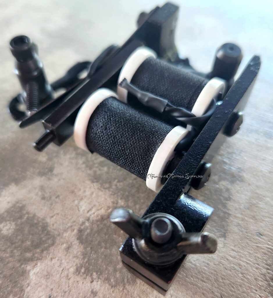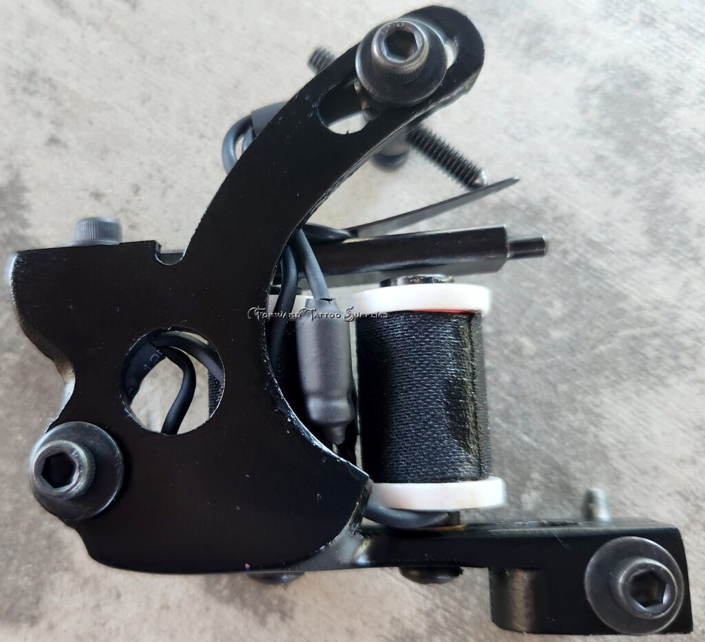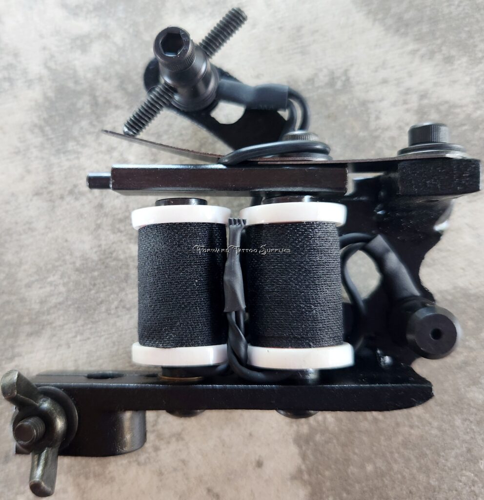 Custom 1.25″ coils, weight is 7.7 oz. This machine is set-up for use as a shader.