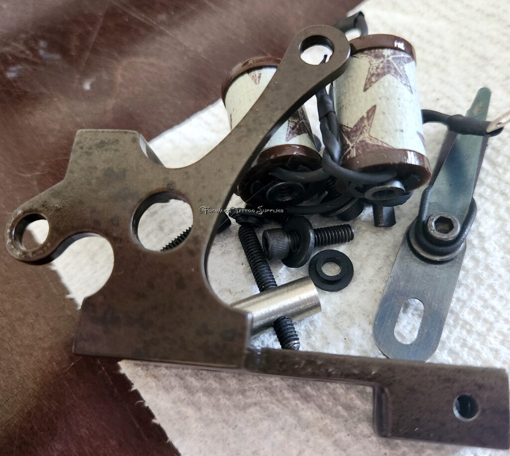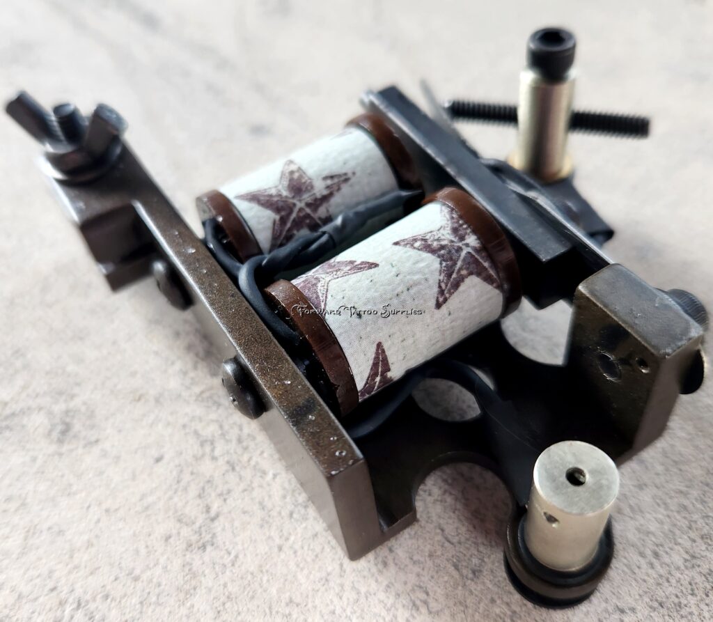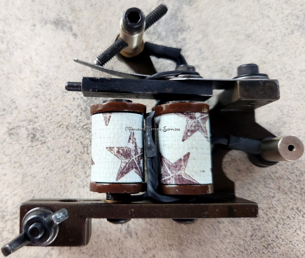 Custom 1.25″ coils, weight is 7.4 oz. This machine is set-up for use as a shader.