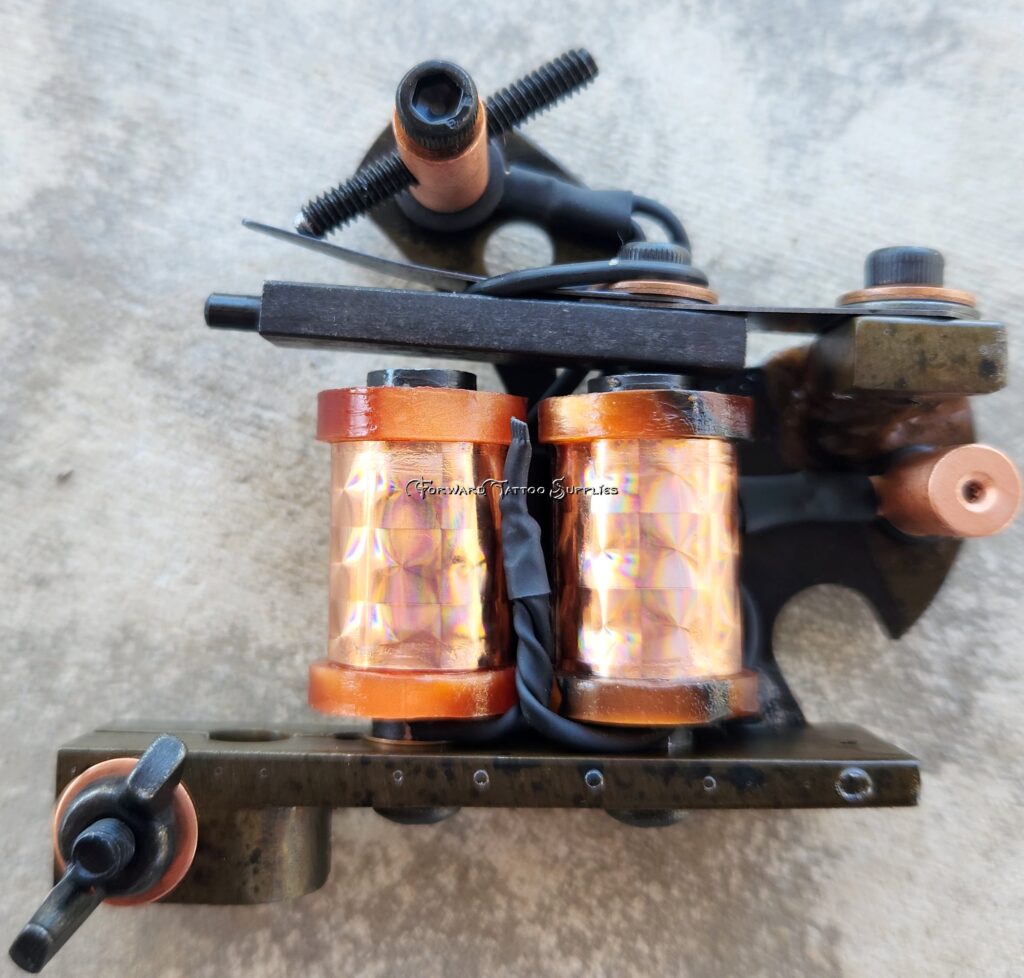Custom 1.25″ 8 wrap coils, weight is 8.1 oz. This machine is set-up for use as a shader.