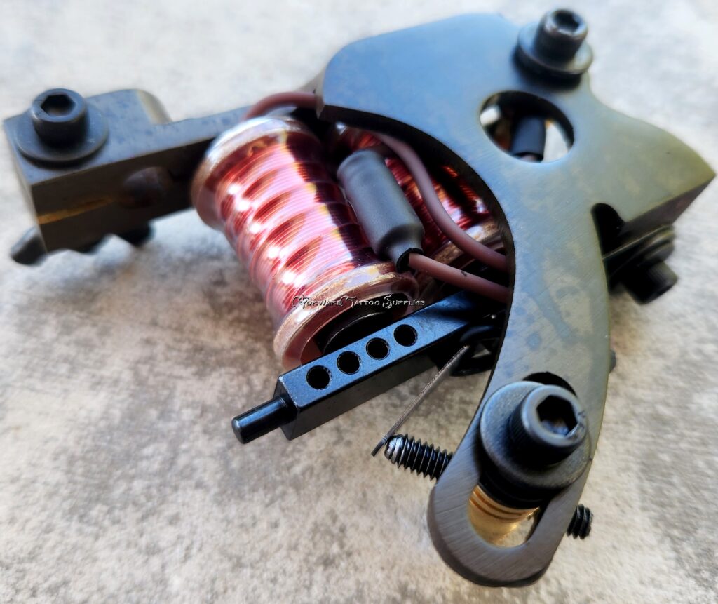 Custom 1.25″ 7.5 wrap coils, weight is 7.8 oz. This machine is set-up for use as a liner.