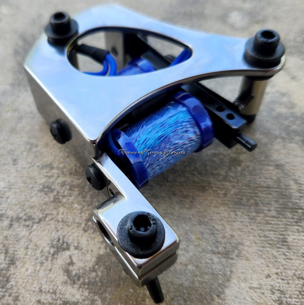 Steel Jensen Liner Tattoo Machine Custom Cut Blue Glass